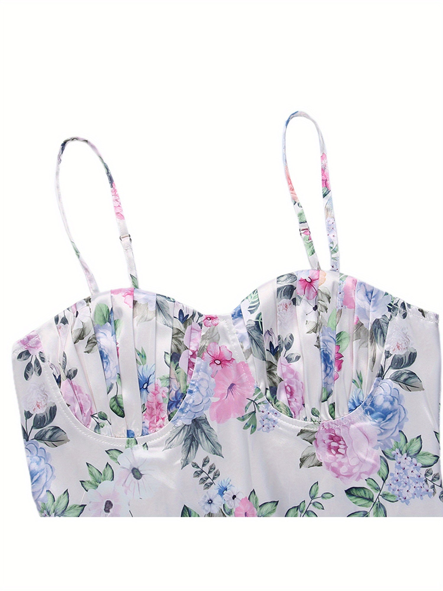 Women'S Y2K Strapless Spaghetti Suspender Dress - Floral Print Summer Midi Dress with Fitted Top & Flowy Skirt, Lightweight Breathable Fabric for Party Vacation Casual Outfits, Spring Summer Fashion, Elegant Design, Quality Craftsmanship